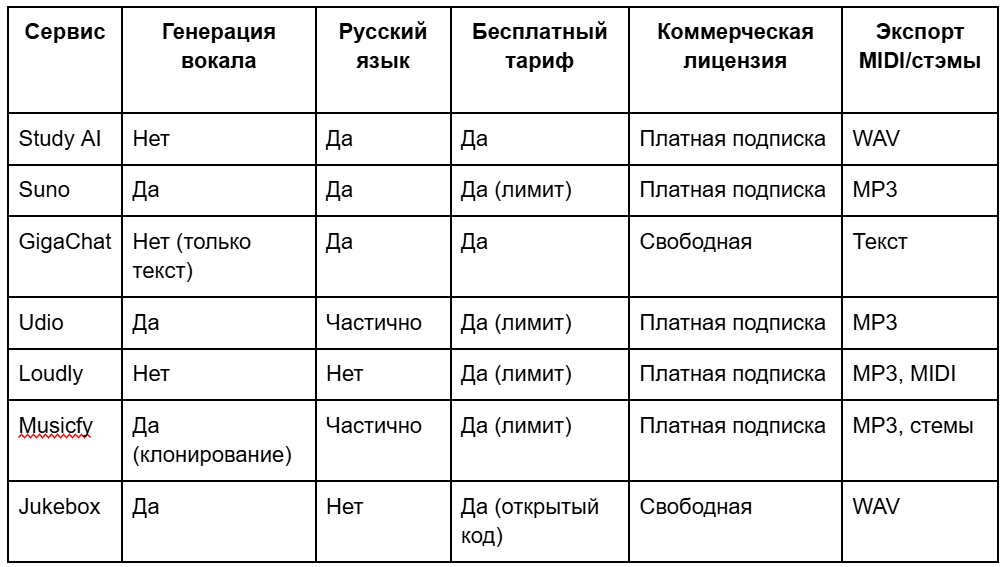 Полностью бесплатный доступ встречается редко. Чаще сервисы дают ограниченное количество генераций или базовый функционал без оплаты. Jukebox можно использовать бесплатно как проект с открытым исходным кодом, но для работы с ним нужны технические навыки и достаточно мощное оборудование.