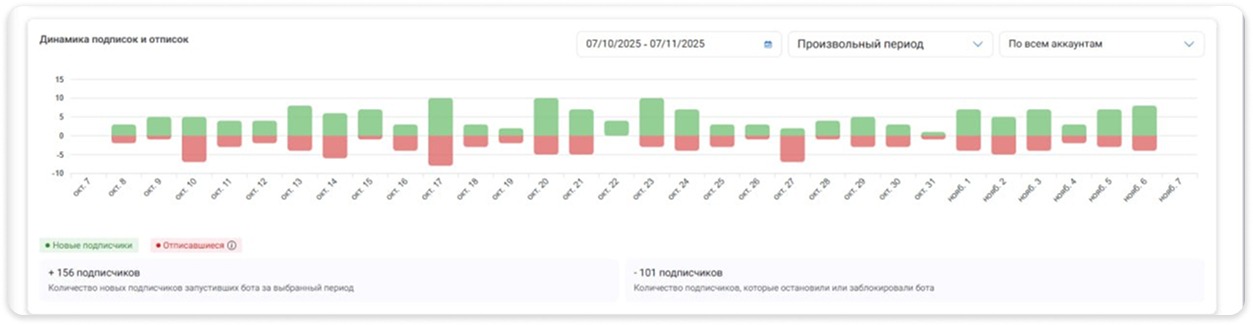 рост вовлеченности: график динамики подписчиков за указанный промежуток времени;