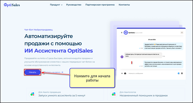 OptiSales.ru – это платформа, автоматизирующая продажи на Авито с помощью интеллектуального ИИ-ассистента.