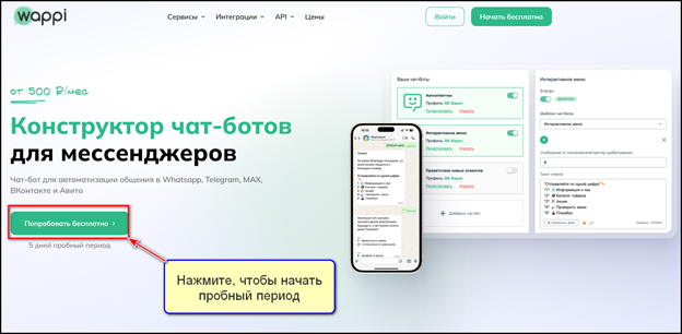 Wappi.Pro — платформа для создания чат-ботов в WhatsApp, которая может использоваться и для автоматизации общения с клиентами на Авито.