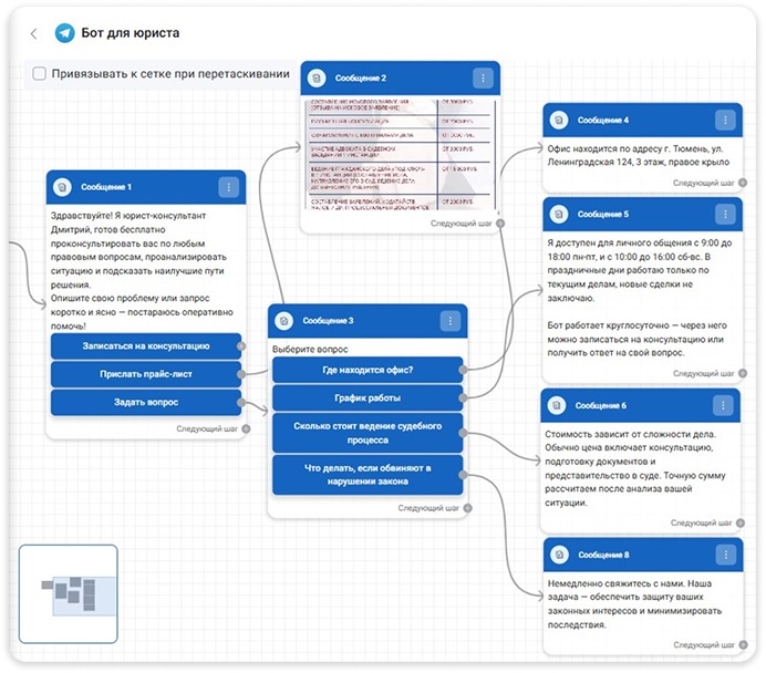 Такой подход превращает разовые уведомления в системную работу: от сложных сценариев взаимодействия до полной автоматизации рутинных процессов. Вы сможете строить цепочки сообщений, настраивать условия отправки и интегрировать бота с CRM‑системами для комплексного управления клиентскими коммуникациями.