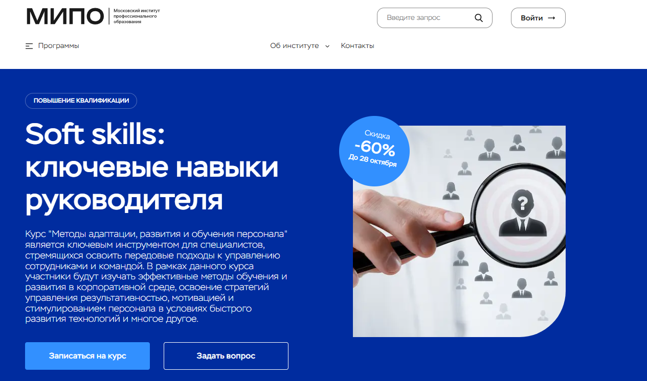 Soft skills: ключевые навыки руководителя от МИПО — программа для менеджеров с фокусом на развитие команды и управление персоналом.
