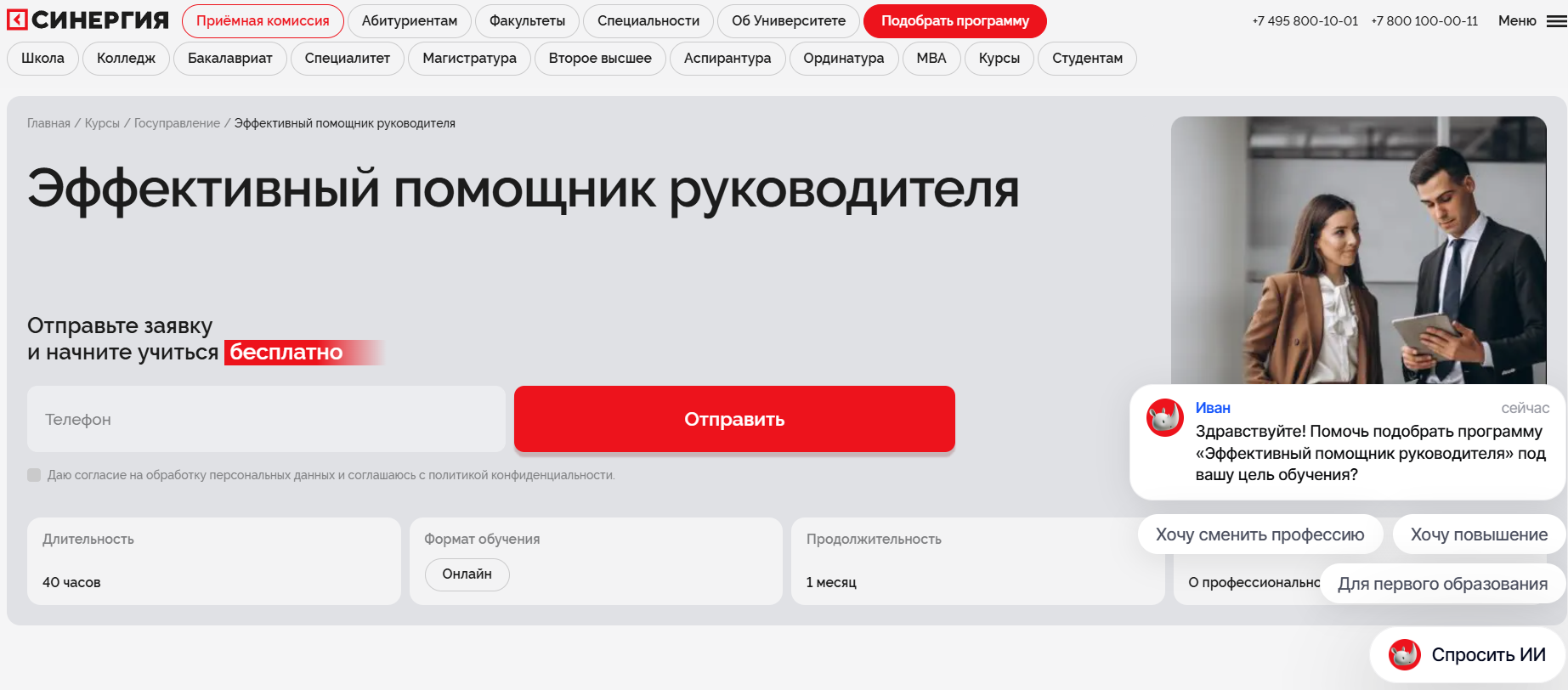 - Онлайн-академии обучения предоставляют гибкие форматы курсов для помощников руководителей