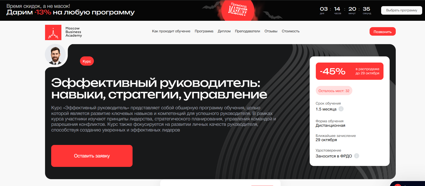 Эффективный руководитель от Московской Бизнес Академии — курс повышения квалификации для развития управленческих навыков и лидерства на 1,5 месяца.