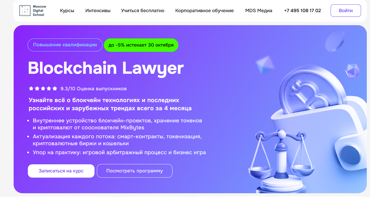 Сайт: https://mosdigitals.ru/courses/blockchain-lawyer