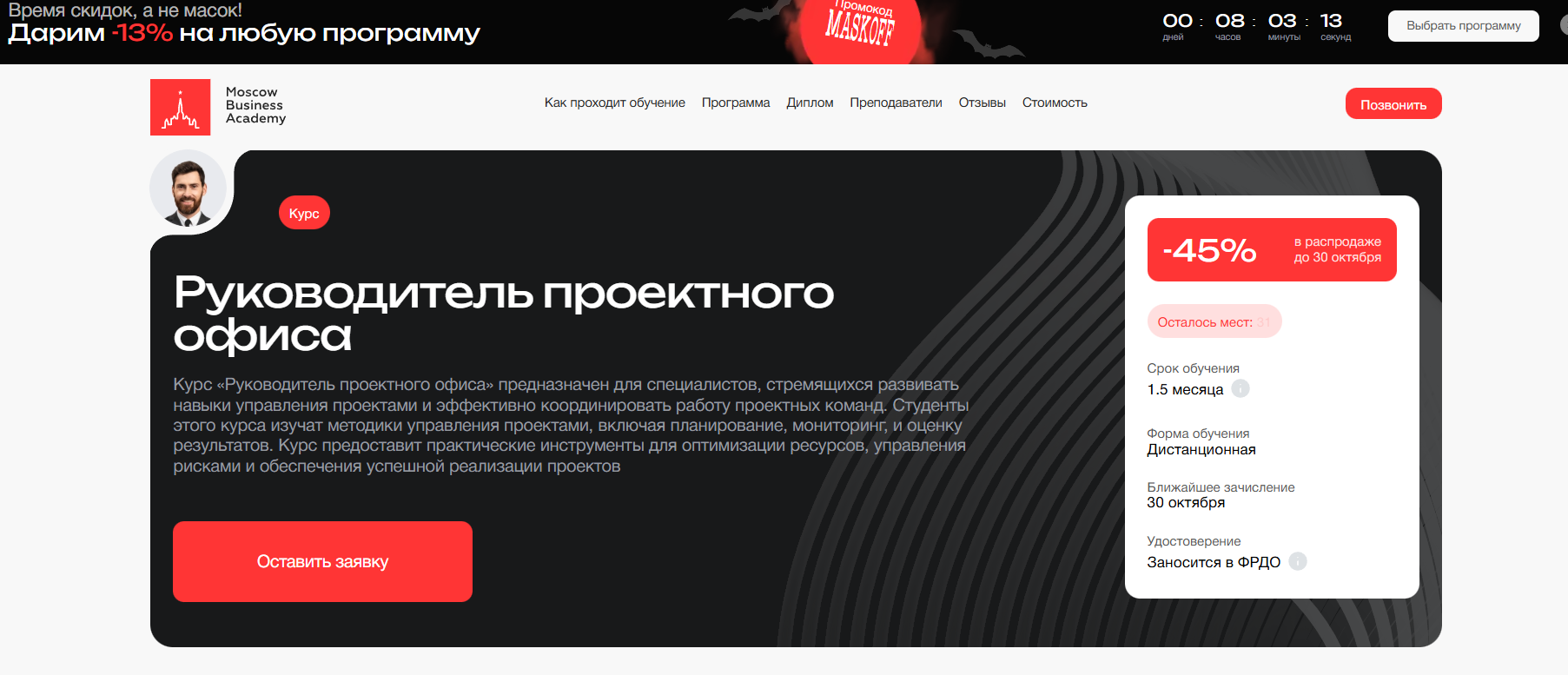 Сайт: https://moscow.mba/programs/course/online/rukovoditel-proektnogo-ofisa