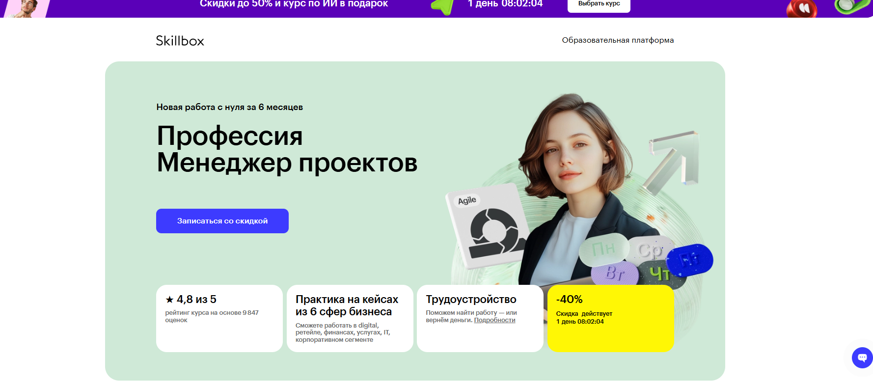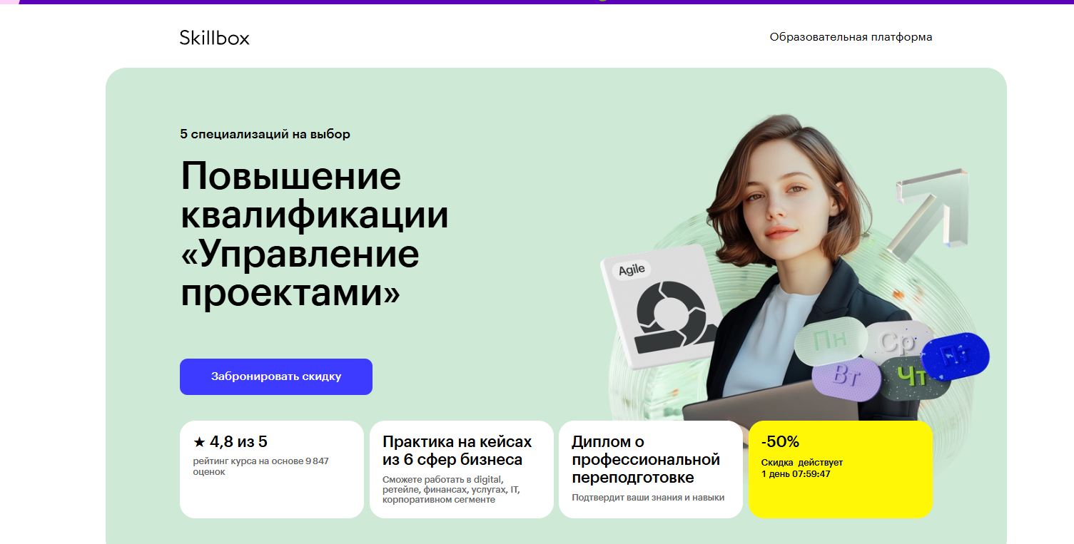 ⭐ Профессия Менеджер проектов PRO от Skillbox — обучение от 5 до 7 месяцев с практикой на кейсах из шести сфер бизнеса и гарантией трудоустройства от экспертов Яндекса и Т-Банка.