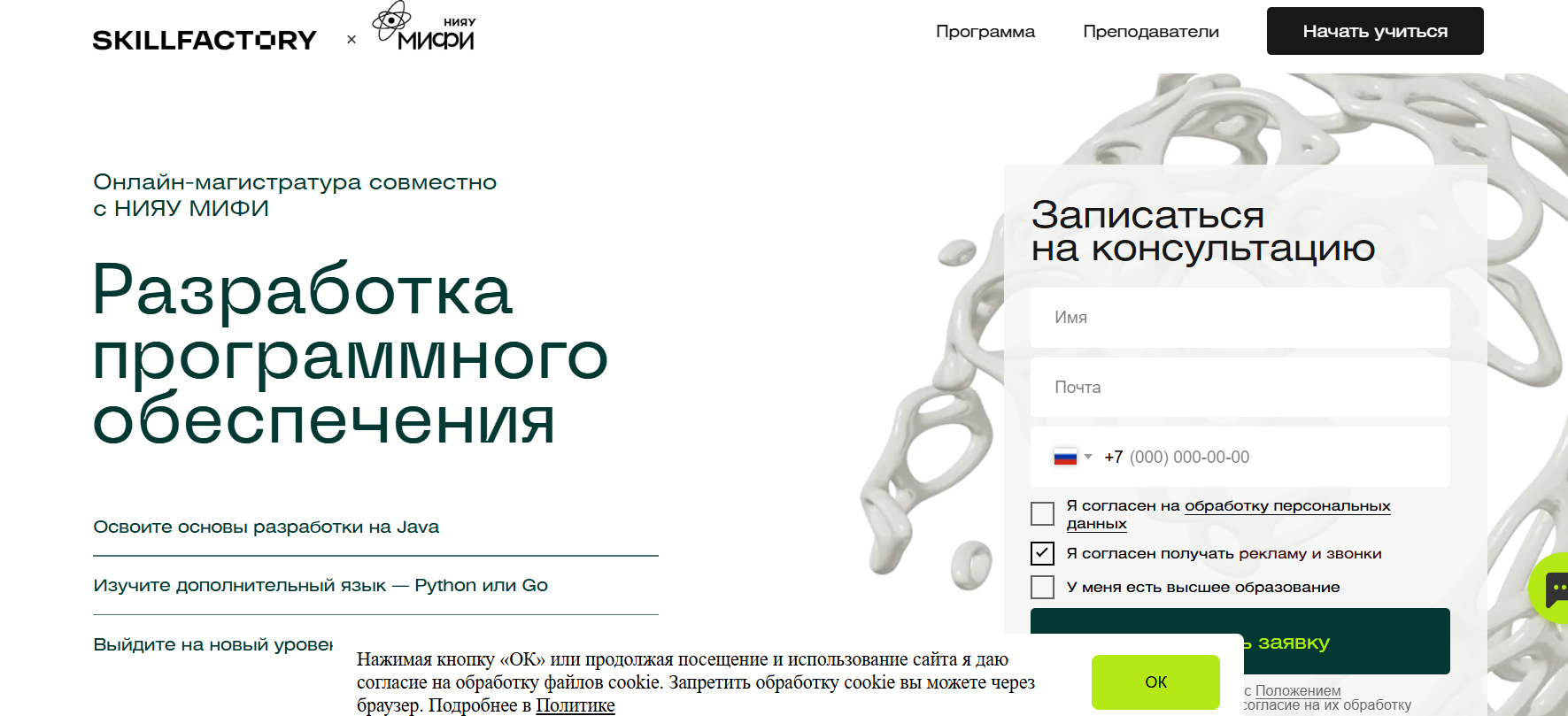 ✨ Разработка программного обеспечения от МИФИ × Skillfactory — онлайн-магистратура на 2 года с дипломом МИФИ, изучением Java, Python или Go и гарантией трудоустройства для разработчиков.