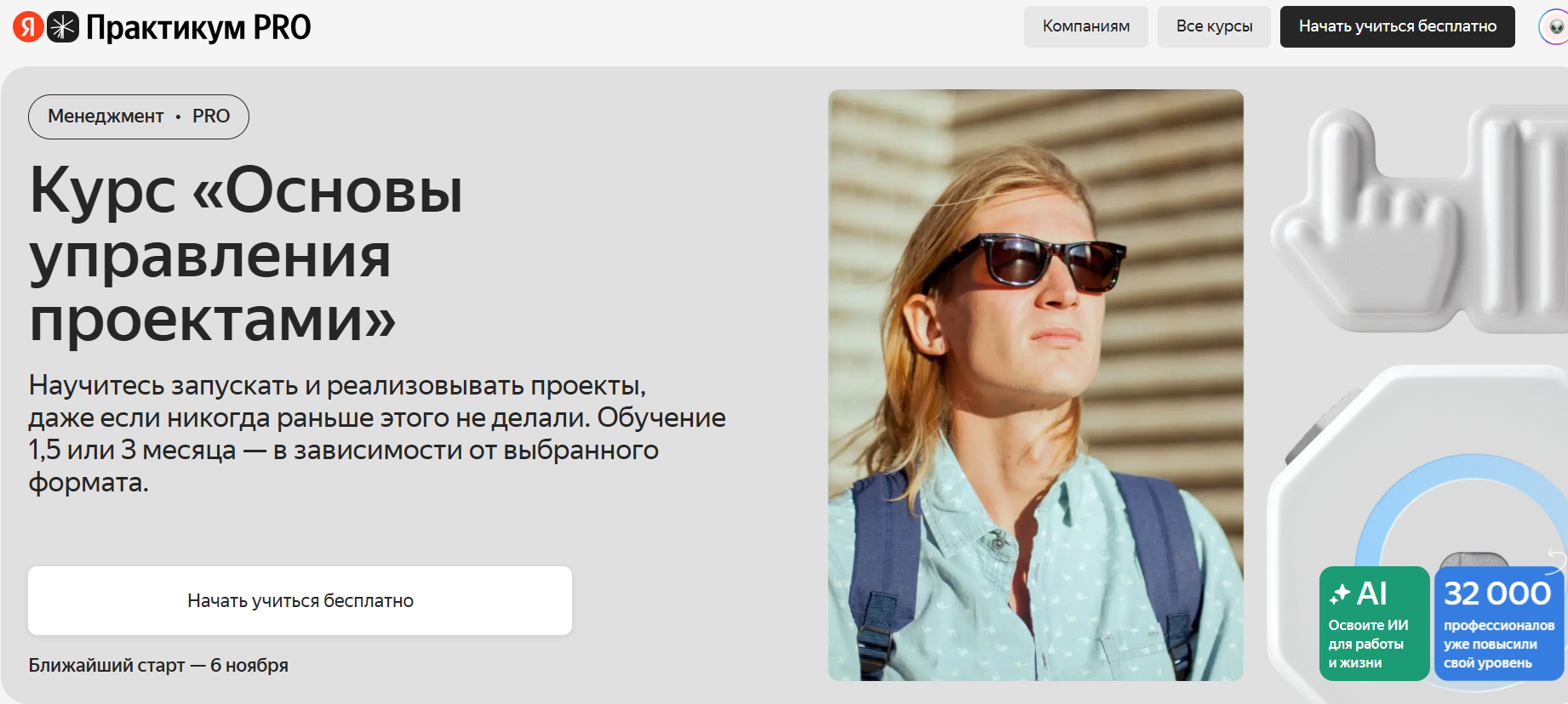 Основы управления проектами от Яндекс Практикум — базовый курс для начинающих менеджеров с практикой в инструментах Gantter и Kaiten и развернутой обратной связью от наставников.