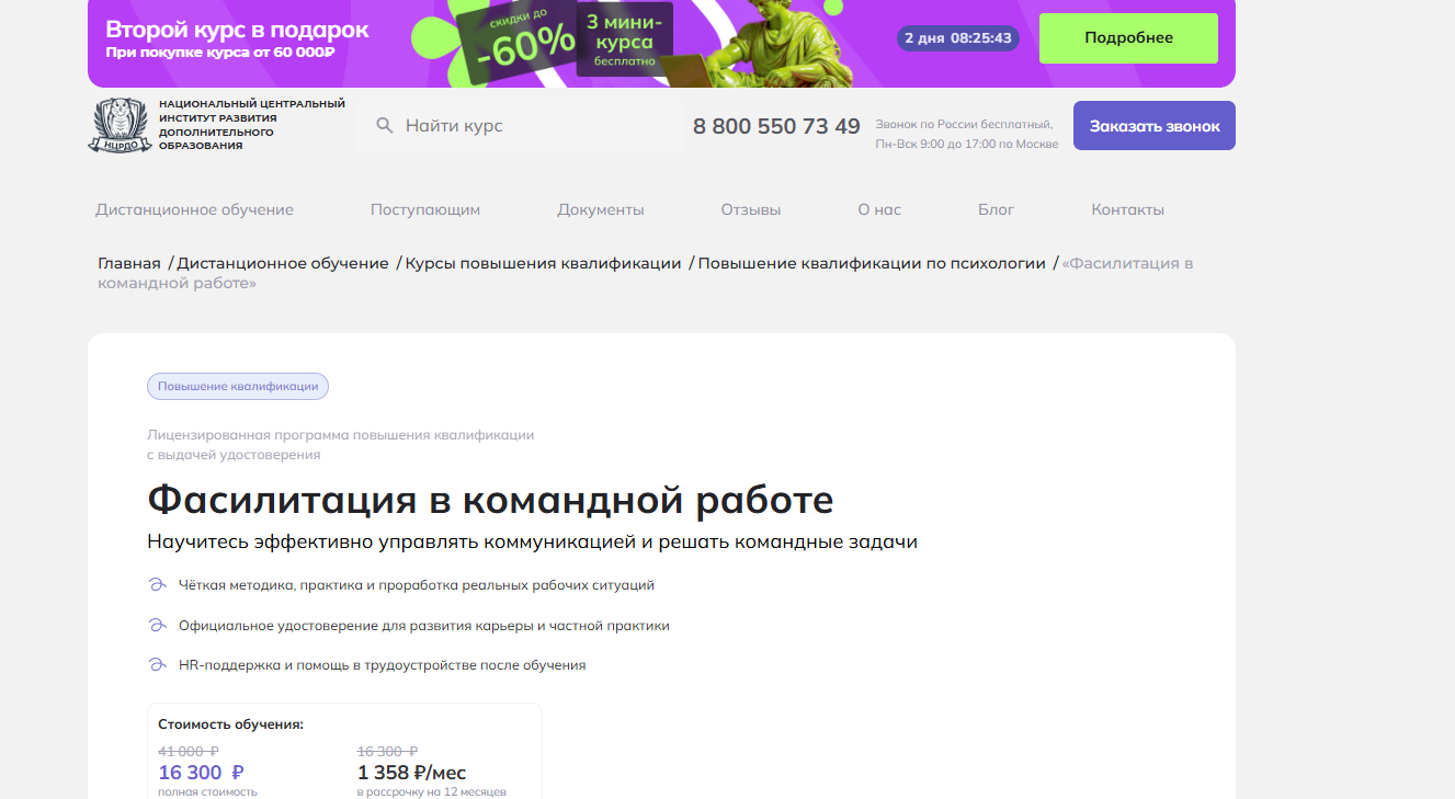 ⭐ Фасилитация в командной работе от НЦРДО — гибкий дистанционный формат с доступом к материалам на 6 месяцев и круглосуточной поддержкой.