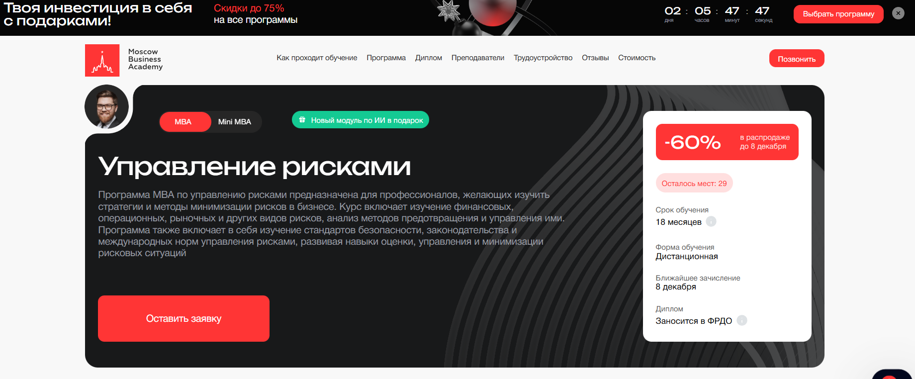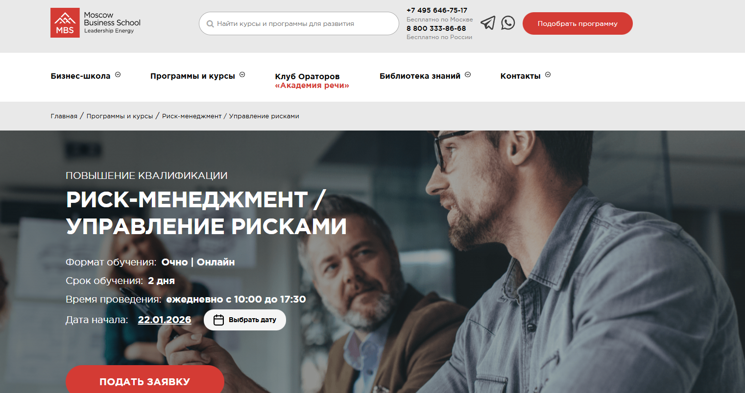 Сайт: https://moscow.mba/programs/mba/online/risk-management