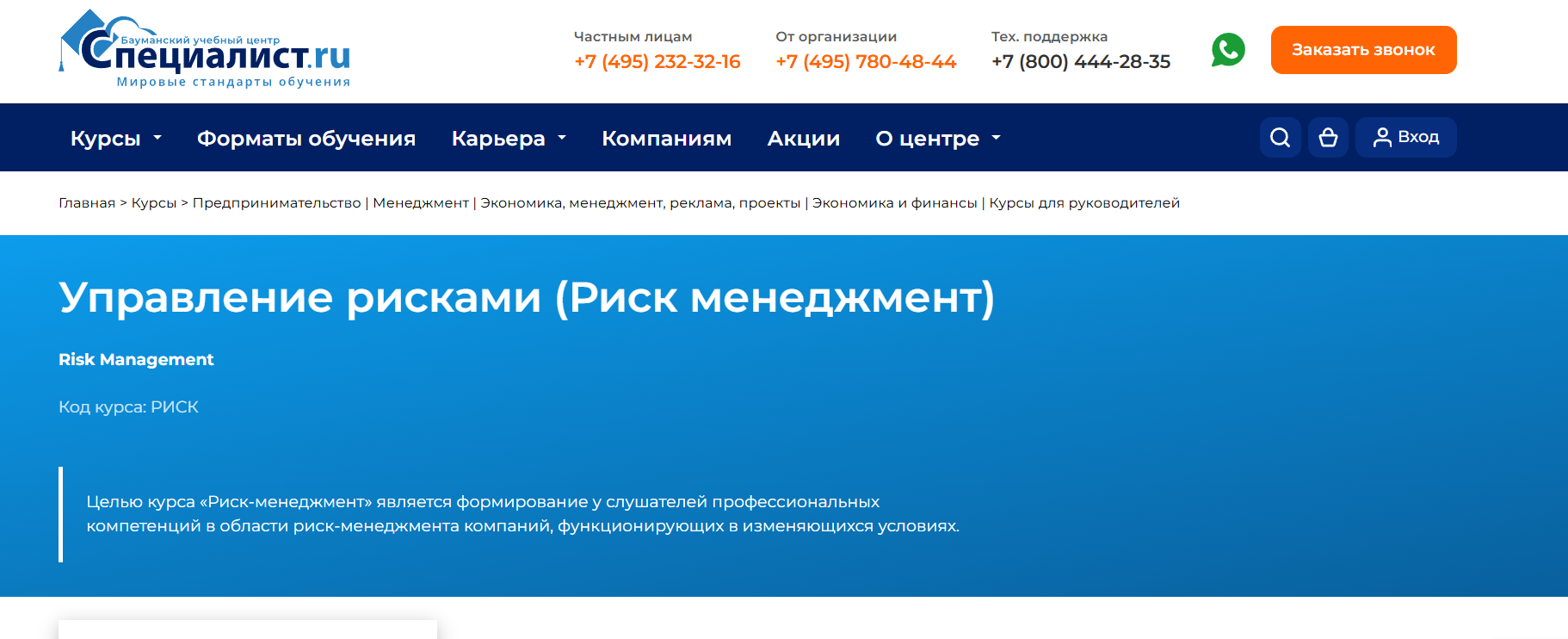 Управление рисками от Центра «Специалист» — базовый курс с целостным пониманием процессов риск-менеджмента и современными методиками анализа для укрепления экономической устойчивости бизнеса.