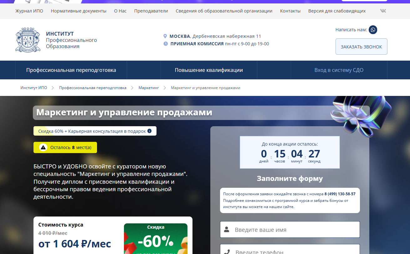 Маркетинг и управление продажами от Института профессионального образования — дистанционный курс переподготовки по маркетинговым стратегиям и управлению продажами с дипломом установленного образца.