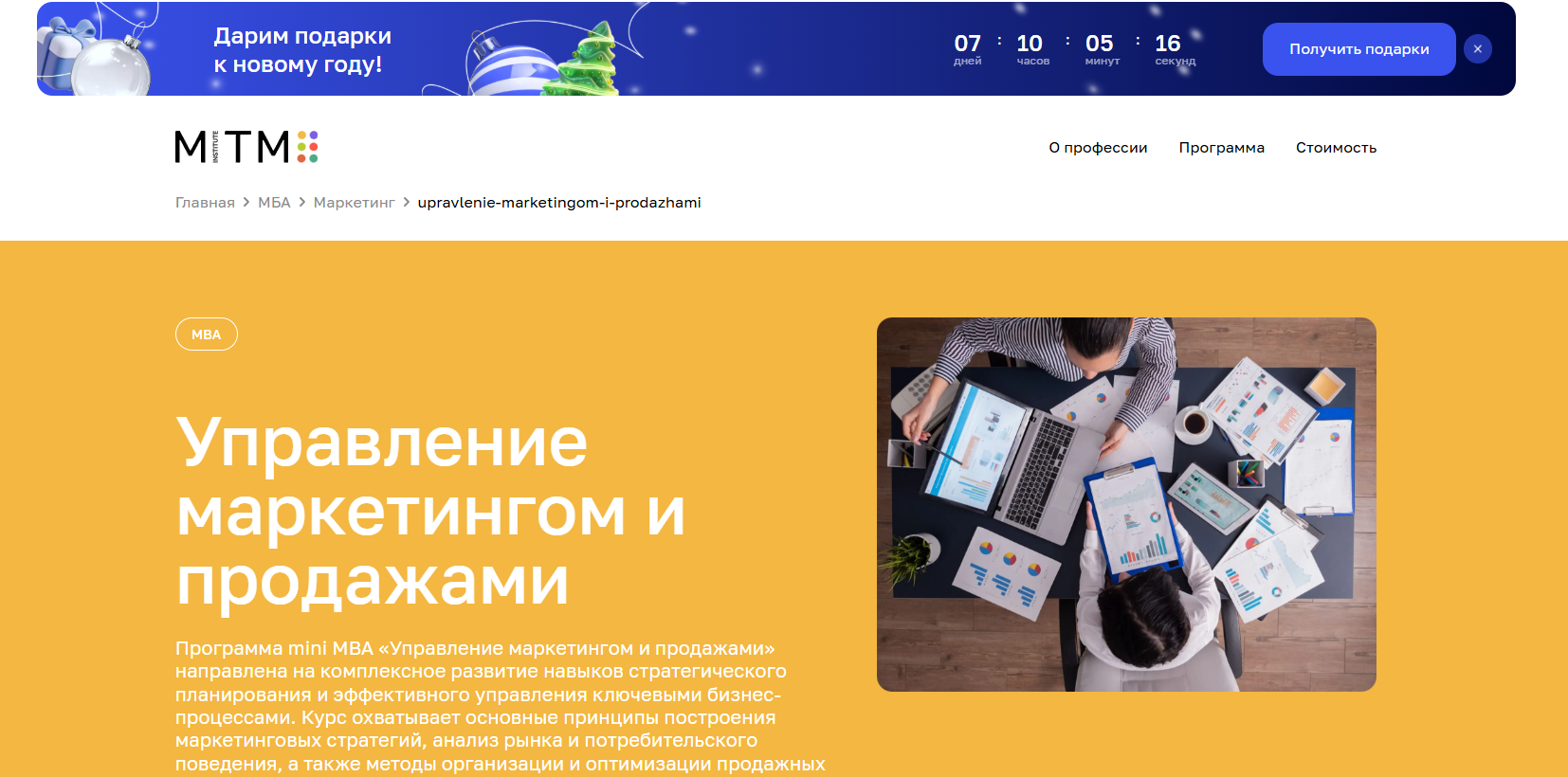 ✨ Управление маркетингом и продажами от Московского института технологий и управления — mini MBA с комплексным развитием навыков стратегического планирования маркетинга и организации продажных процессов.