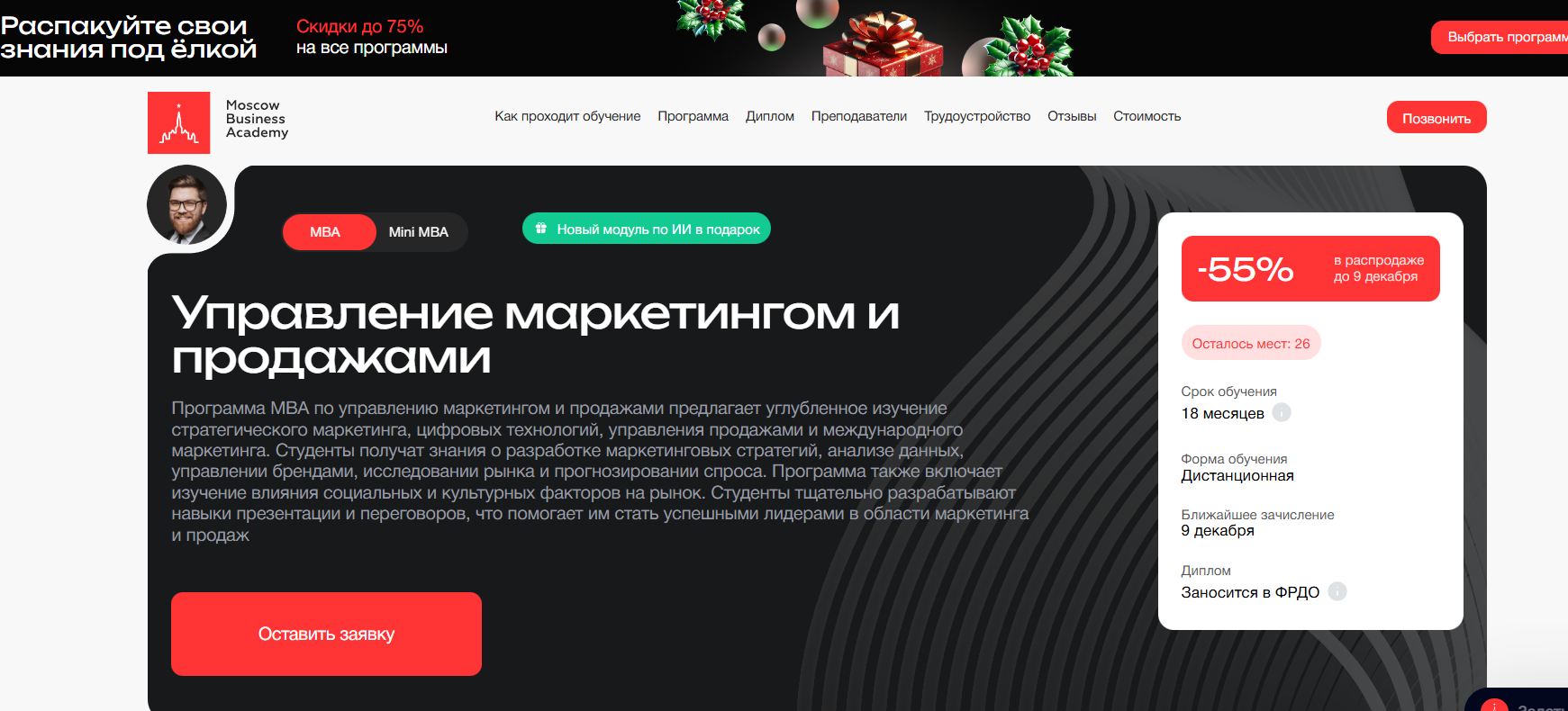 Управление маркетингом и продажами от Moscow Business Academy — программа MBA по стратегическому маркетингу, цифровым технологиям продвижения и управлению брендами для руководителей.