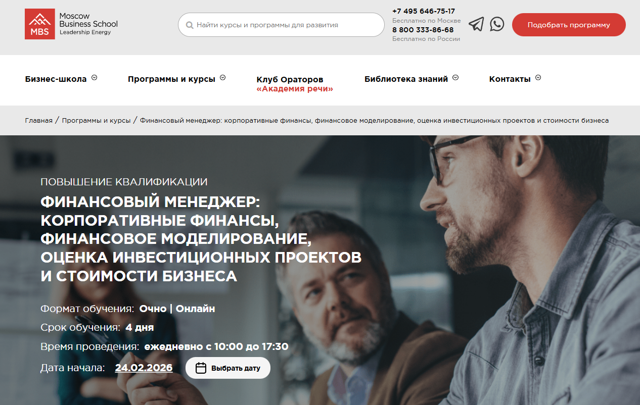 Финансовый менеджмент: корпоративные финансы от MBS — двухдневный семинар по инвестиционному анализу и оценке стоимости бизнеса.