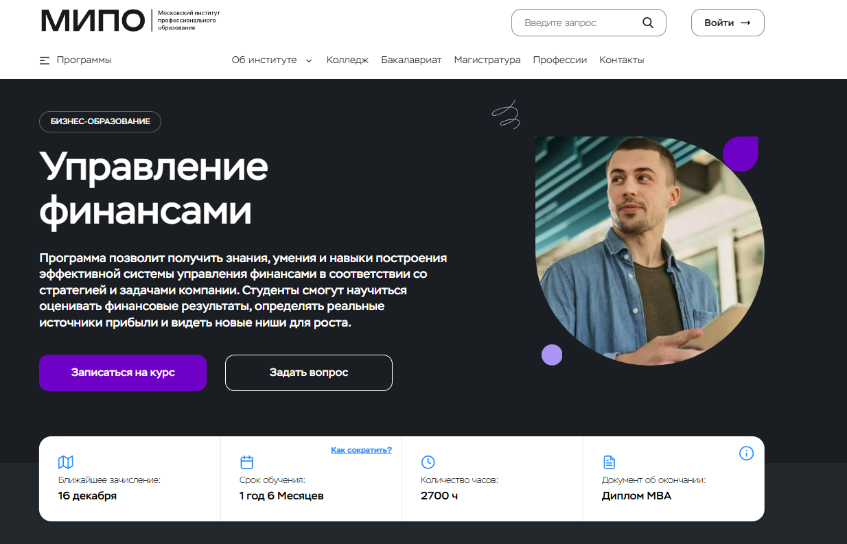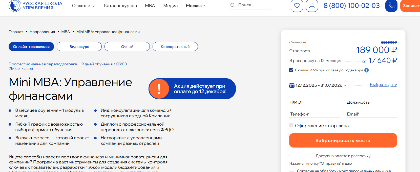 Сайт: https://moscow.mba/programs/profession/online/upravlenie-finansami
