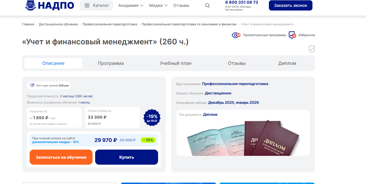 Учет и финансовый менеджмент от НАДПО — дистанционная переподготовка с освоением бухгалтерского и налогового учета для специалистов.