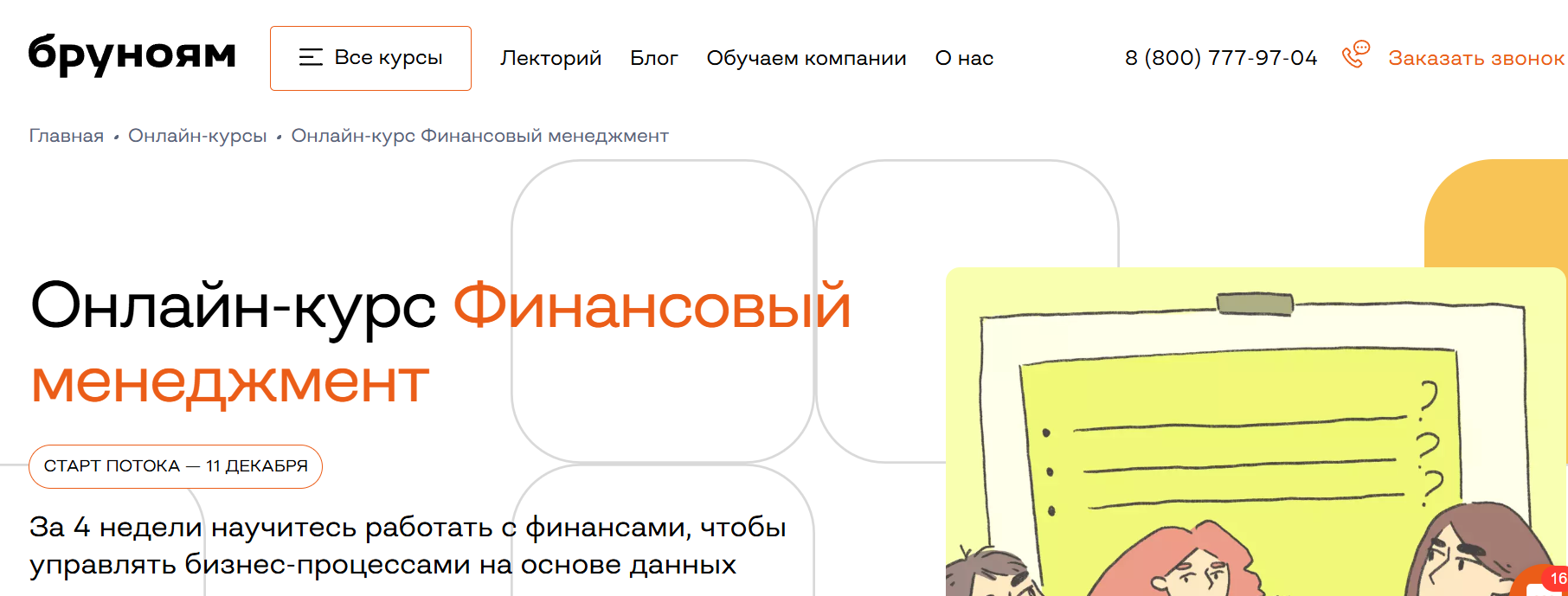 Финансовый менеджмент от Бруноям — онлайн-курс для предпринимателей и менеджеров с гибким графиком обучения.