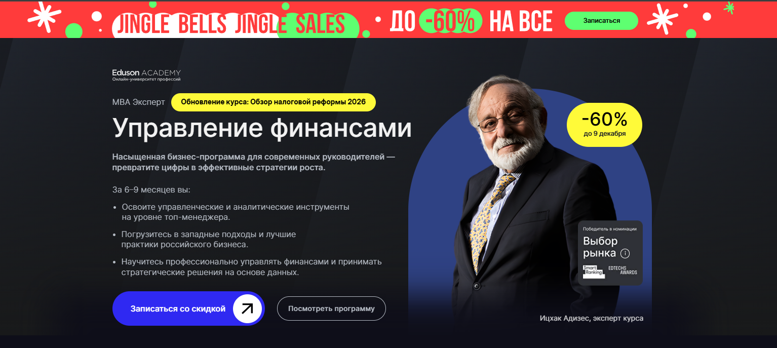 MBA: Управление финансами от Eduson Academy — комплексная программа с 373 интерактивными уроками и бессрочным доступом к материалам для топ-менеджеров.