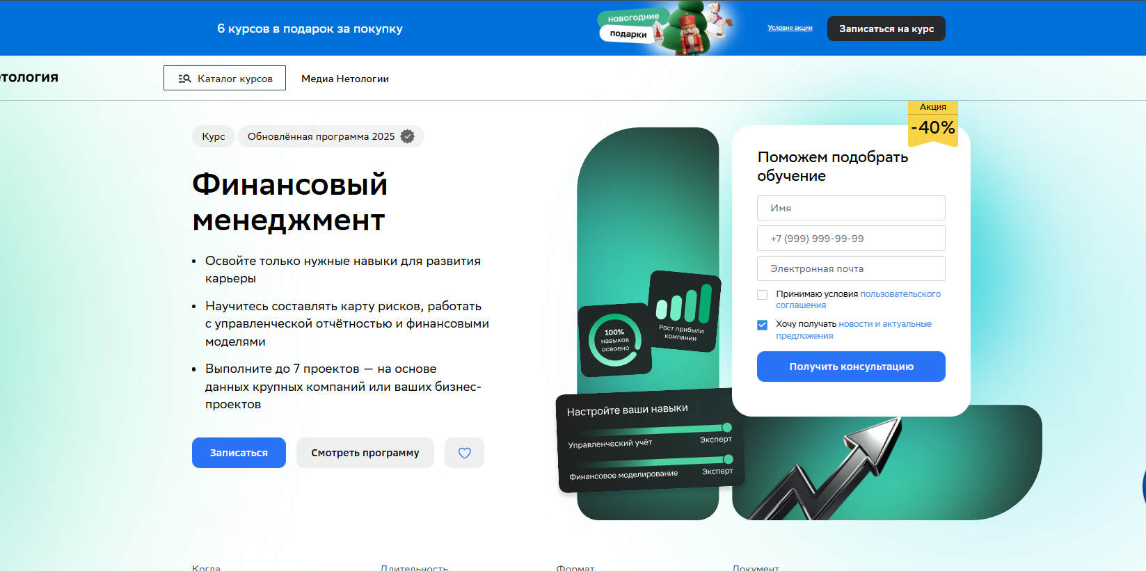 ✨Финансовый менеджер от Нетология — комплексная программа с практическими кейсами и помощью центра карьеры в поиске работы.