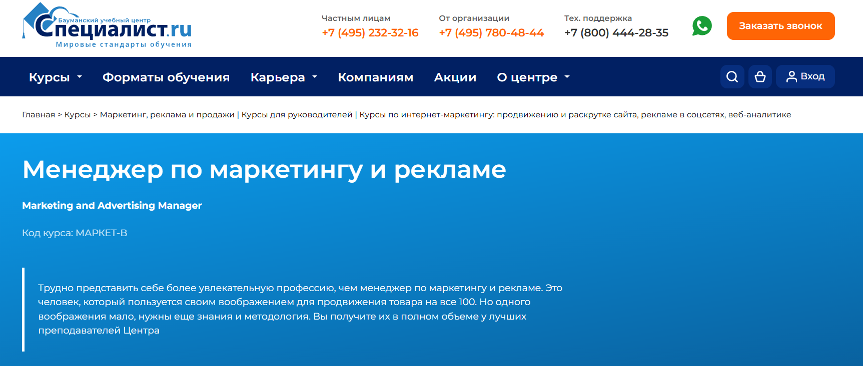 Менеджер по маркетингу и рекламе — Moscow Business School
