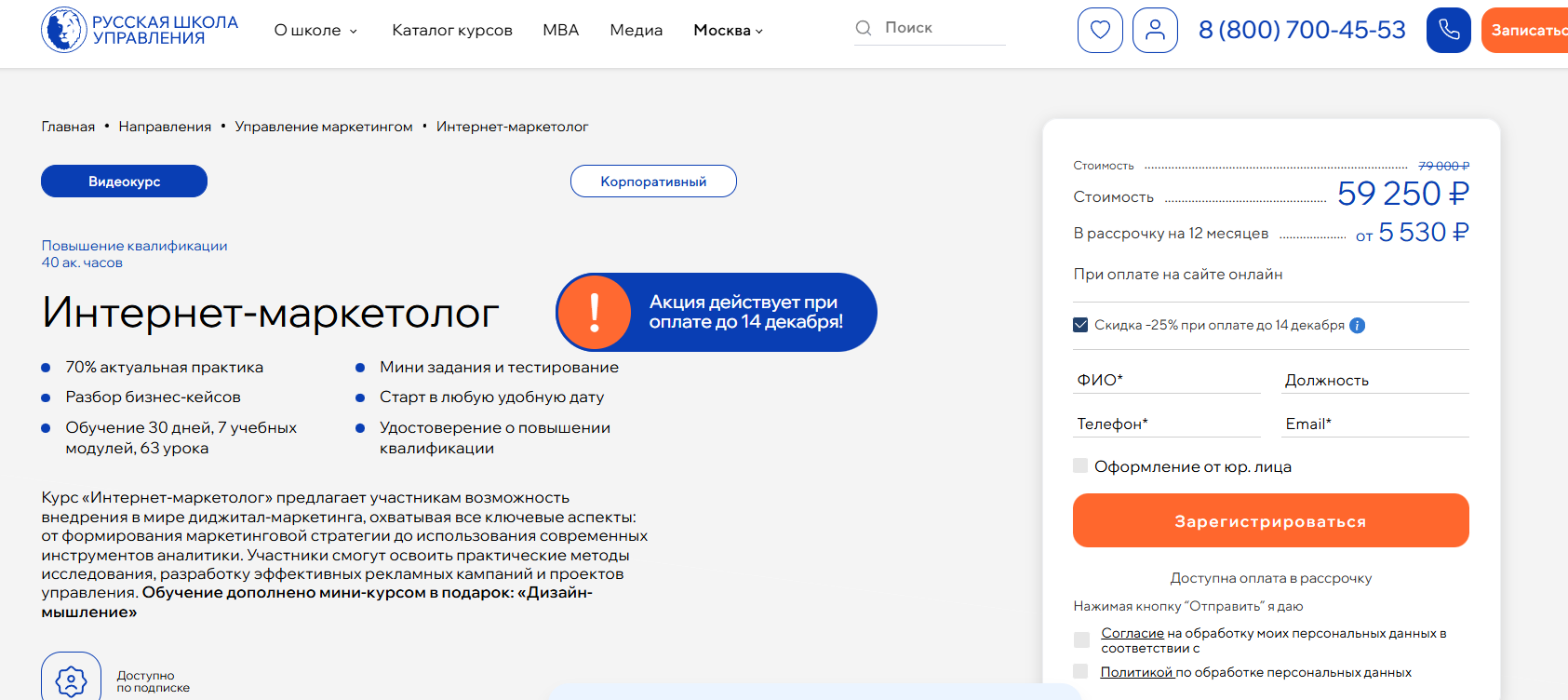⭐ Интернет-маркетолог от Русской Школы Управления — программа переподготовки с удостоверением государственного образца и изучением digital-маркетинга.