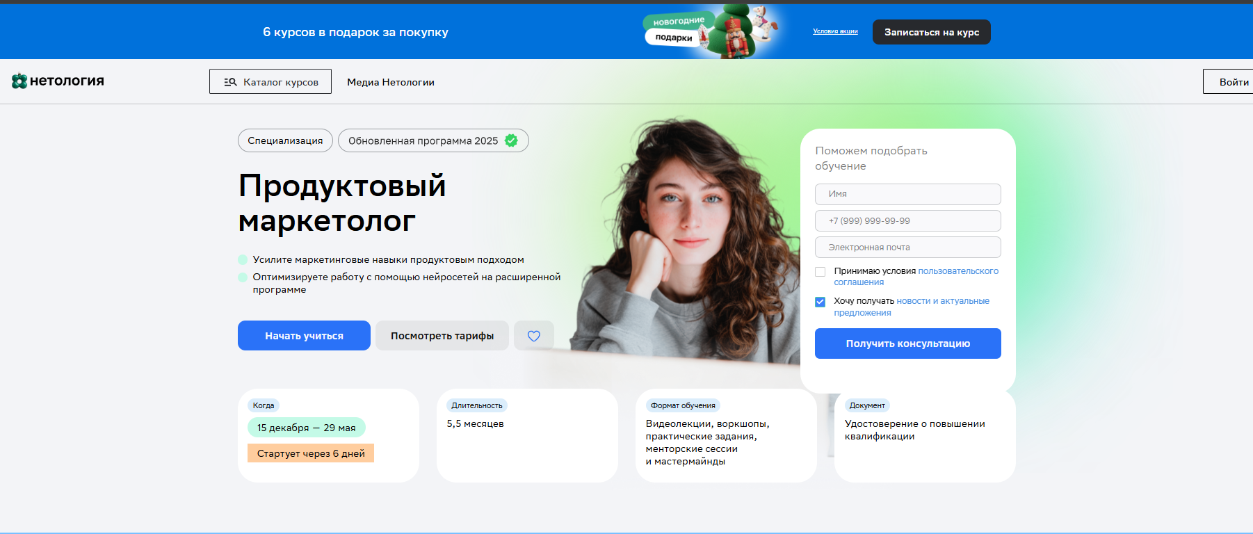 Продуктовый маркетолог от Нетологии — годовой курс с 21 практическим заданием, охватывающий полный спектр навыков от исследований до GTM-стратегии.