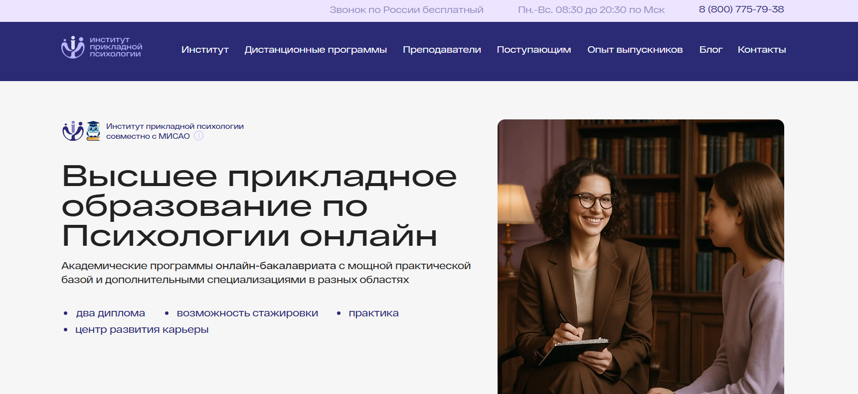 Московский институт психологии предлагает широкий спектр образовательных программ с акцентом на дистанционное обучение. Использование современных образовательных технологий позволяет студентам учиться дистанционно и получать дипломы государственного образца. Институт предлагает программы бакалавриата и дополнительные курсы повышения квалификации и профессиональной переподготовки. Обучение можно совмещать с работой, что делает его доступным для людей с различной занятостью. Студенты получают не только теоретические, но и практические навыки, необходимые для успешной карьеры в области психологии и образования.