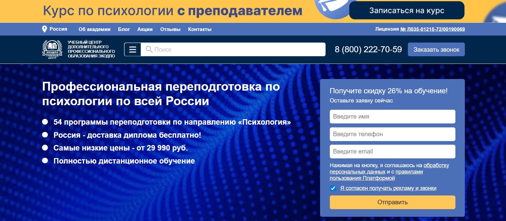 Профессиональная переподготовка по психологии