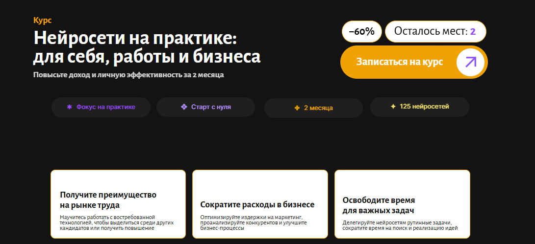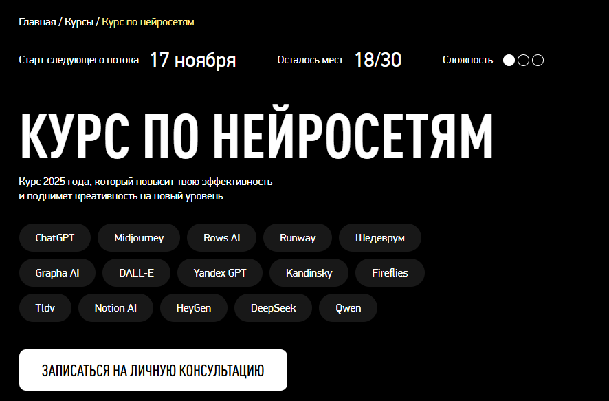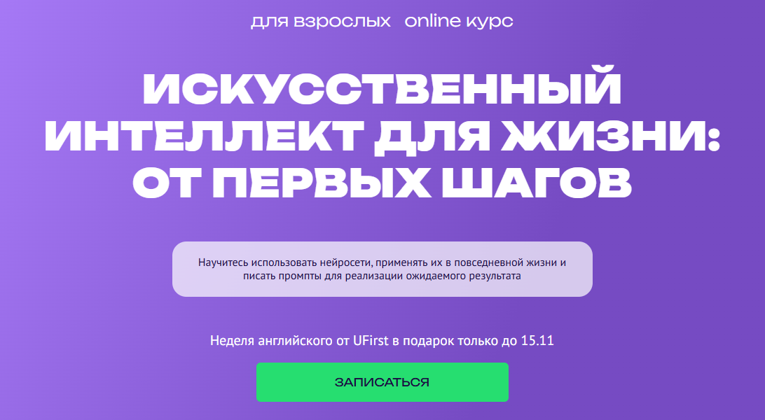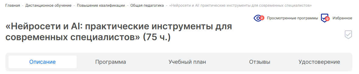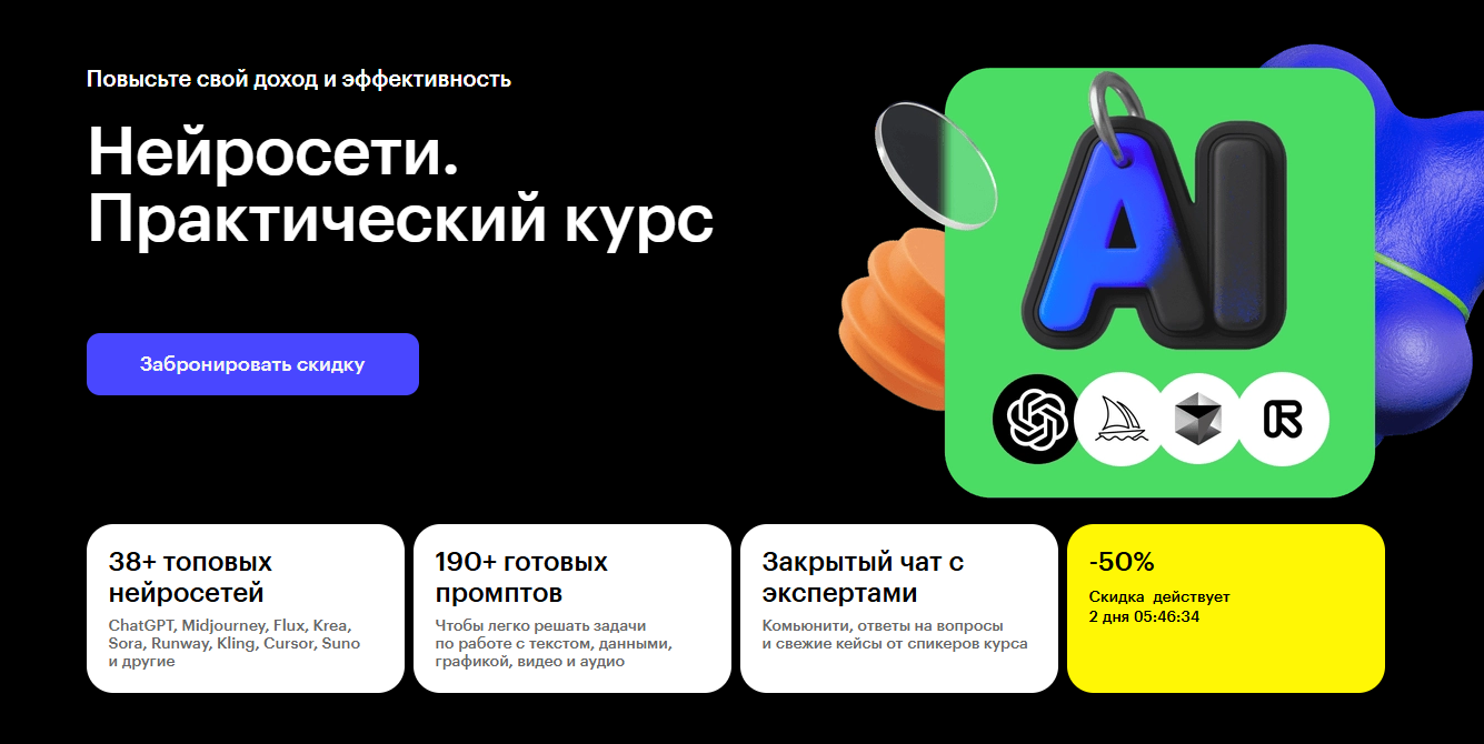 - «Нейросети и AI: практические инструменты для современных специалистов» – НАДПО (по промокоду onlinekursy действует скидка 5%)