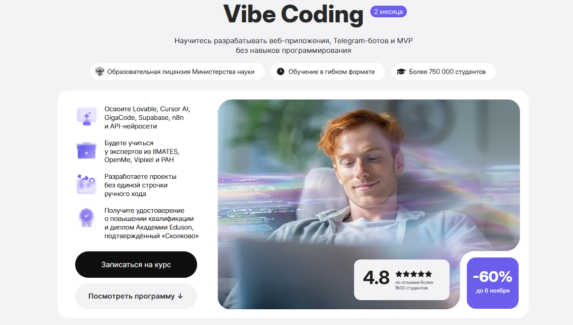 - Vibe Coding — Академия Eduson (по промокоду kursy скидка 5%)