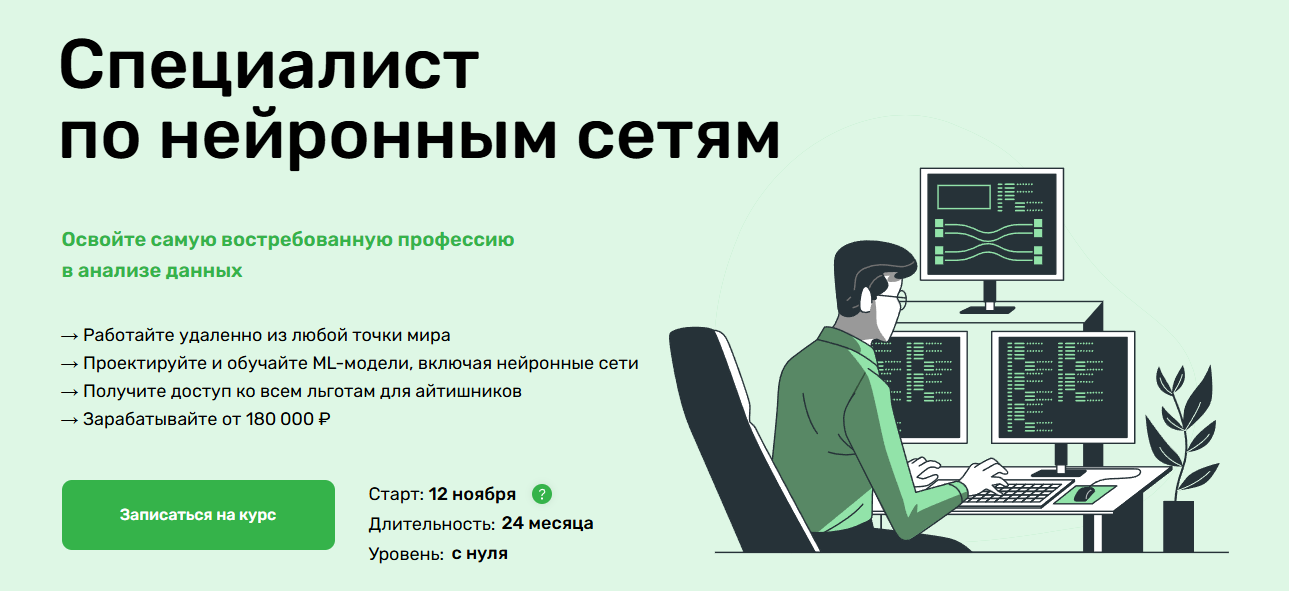 - Специалист по нейронным сетям — SkillFactory: Глубокая 2-летняя подготовка с ML-специализациями и гарантией трудоустройства.