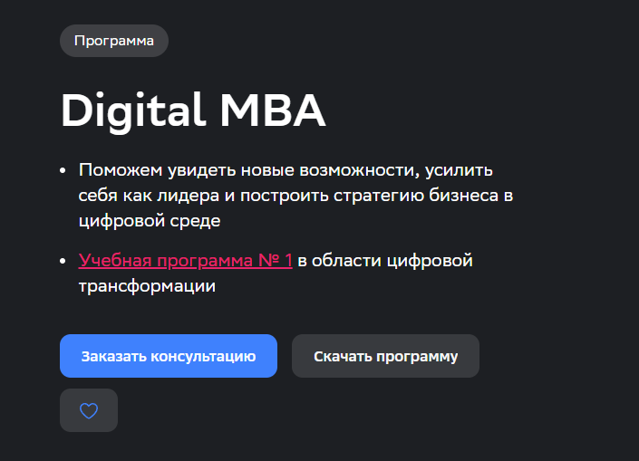 Программа создана для развития управленцев, которые планируют усиливать лидерские качества и применять инструменты управления для построения долгосрочной стратегии. В процессе обучения слушатели осваивают практические навыки цифровой трансформации, цифровым маркетингом и стратегическому планированию, учатся анализировать показатели бизнеса и принимать стратегические решения. Большое внимание уделяется стратегическому менеджменту, разработке маркетинговых стратегий и практическим инструментам для работы с командами. Интенсивы ведут преподаватели международных школ и эксперты из крупных российских компаний, что обеспечивает баланс между западными подходами и локальной практикой. Участники получают доступ к специализированным материалам, инструментам и возможностям для обсуждения реальных кейсов. Форматы обучения включают работу в мини-группах и консультации с бизнес-трекером. После окончания обучения слушатели смогут внедрять эффективные стратегии роста и управлять маркетинговыми инструментами. Программа помогает расширить круг деловых контактов и увидеть возможности для масштабирования бизнеса. Многие студенты отмечают, что программа сопоставима с executive MBA по уровню практичности.