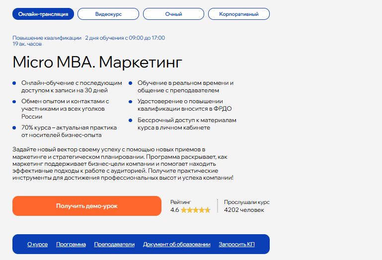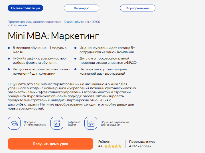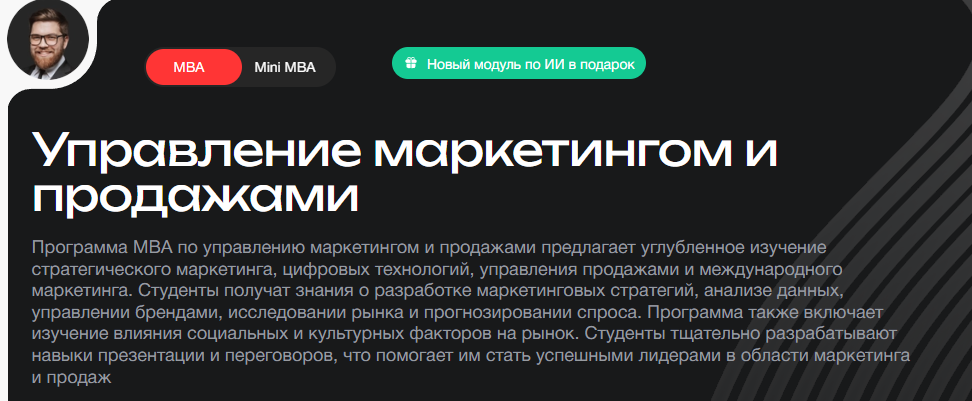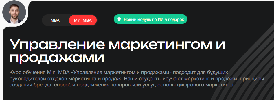 4. Управление маркетингом и продажами, mini MBA — Moscow Business Academy (по промокоду onlinekursy скидка 10%)