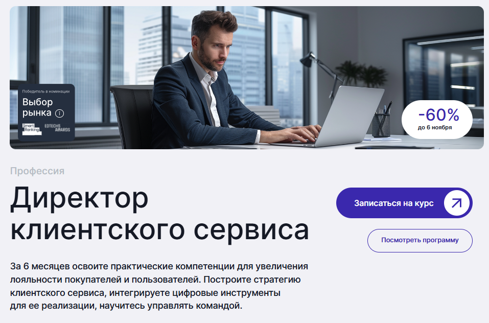 - Директор клиентского сервиса — Eduson Academy (по промокоду kursy скидка 5%)
