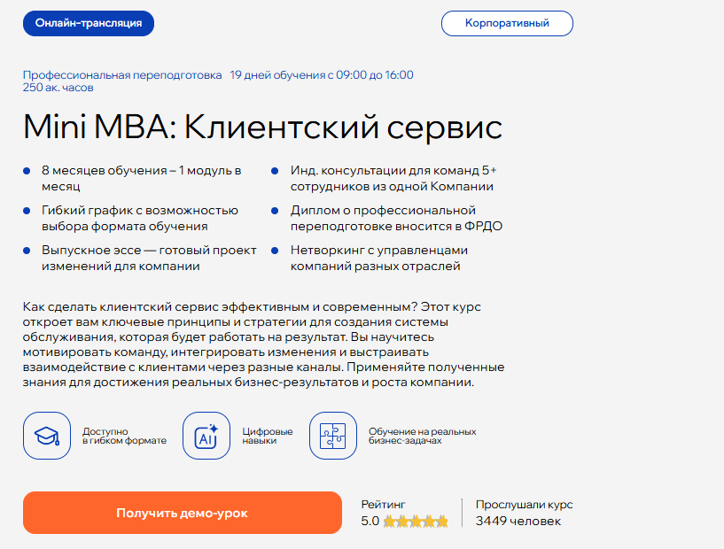 - Moscow Business School — Клиентоориентированный персонал: развитие сервиса первой линии и управленческих навыков для фронт-офиса