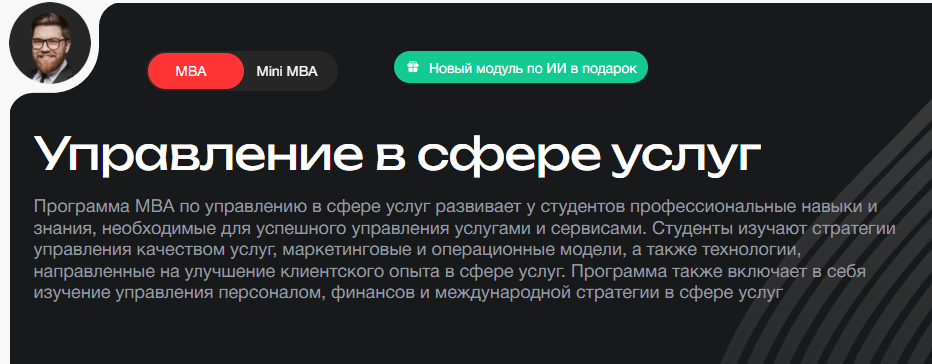 - Управление в сфере услуг — Moscow Business Academy (по промокоду onlinekursy скидка 10%)