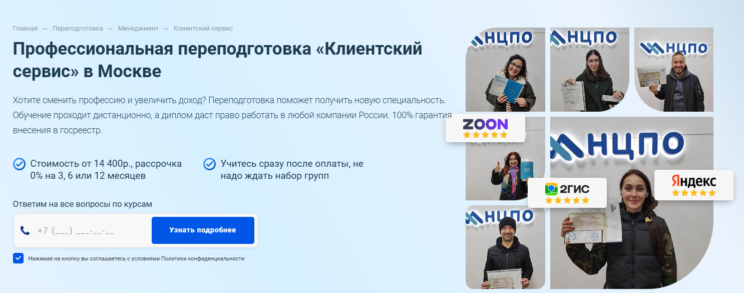 - Профессиональная переподготовка «Клиентский сервис» — НЦПО