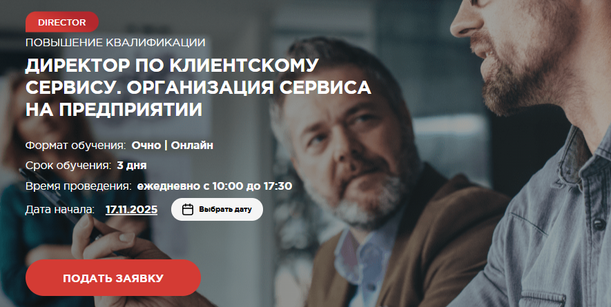 - Moscow Business School — Директор по клиентскому сервису: очный формат с разбором конфликтов и построением сервисной структуры
