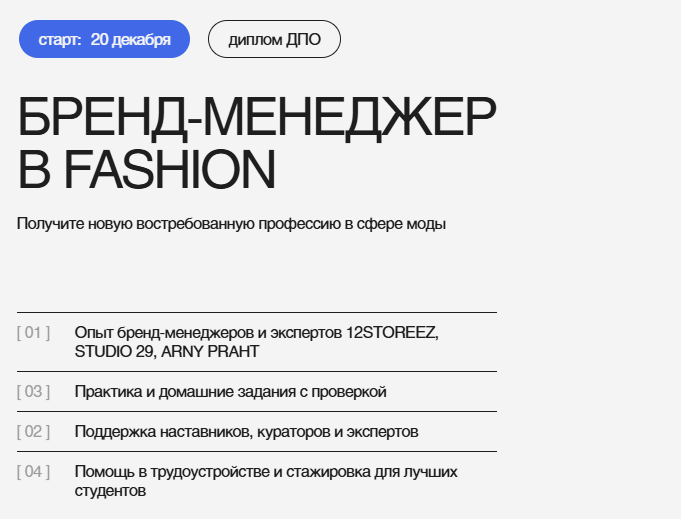 • Практика: стажировка в Fashion Factory School и работа с реальными проектами fashion-брендов.