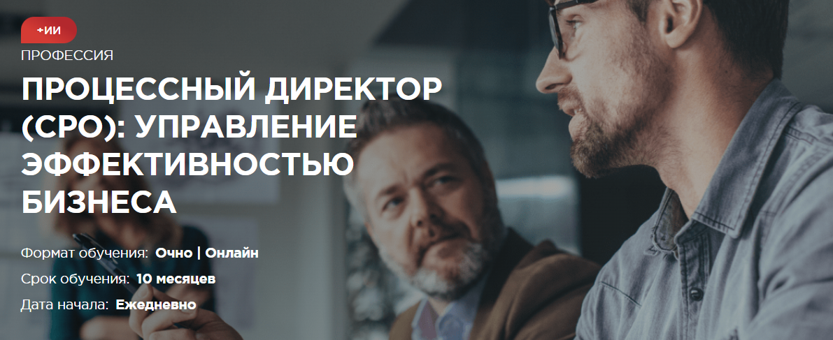 - Процессный директор (CPO): управление эффективностью бизнеса — Moscow Business School (по промокоду onlinekursy10 скидка 10%)