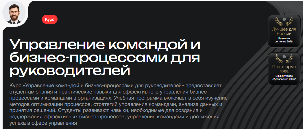 - Курс помогает освоить современные подходы к управлению командами, проектному управлению и операционному менеджменту.