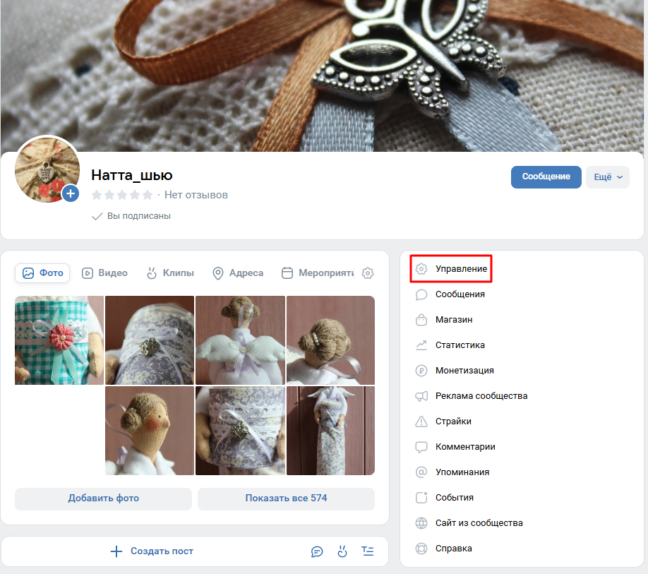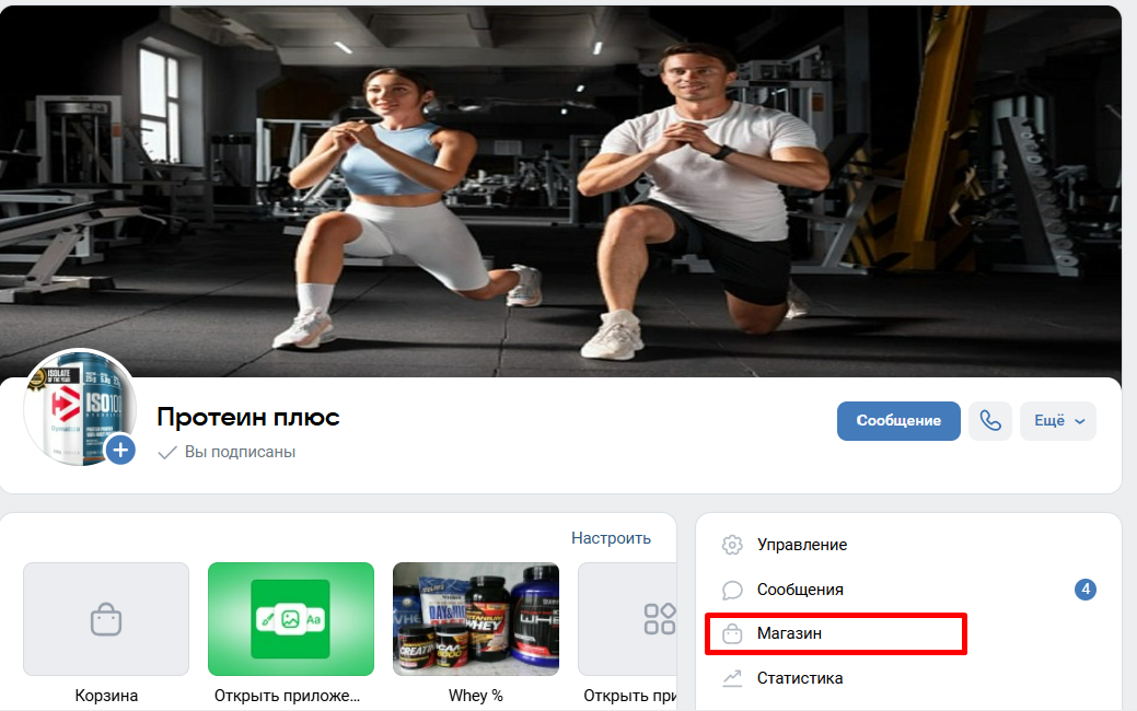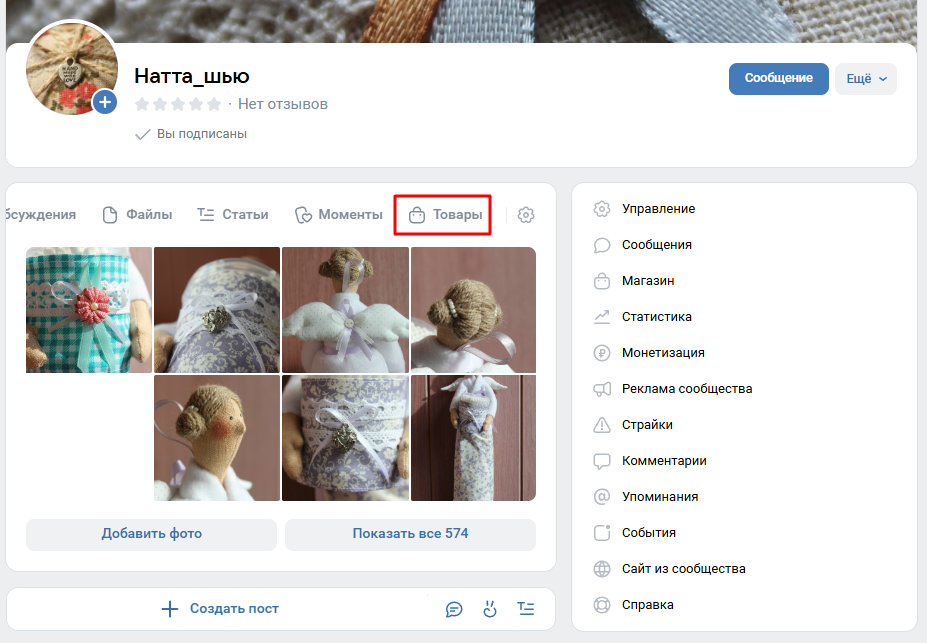 Перейдите на страницу сообщества и откройте вкладку «Товары».