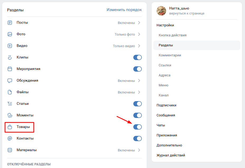 Чтобы начать работу с товарами, нужно активировать соответствующий раздел в сообществе. Раздел доступен только бизнес-страницам и сообществам, которые занимаются торговлей.