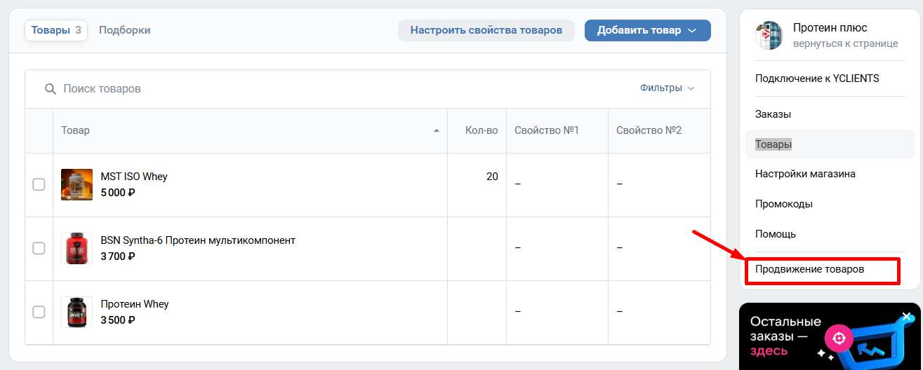 1. Перейдите в «Магазин» → «Продвижение товаров».