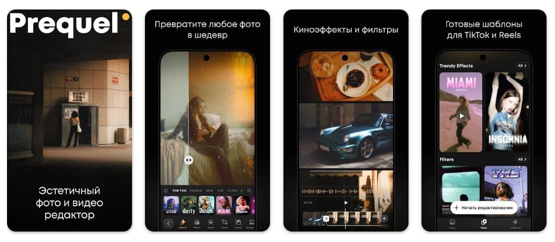 Prequel — это редактор фото и видео, который делает ставку на стилистику: винтаж, VHS, 3D, цветовые эффекты, текстуры и готовые шаблоны. Отличный инструмент, если вы делаете визуальный контент для соцсетей и хотите «атмосферу» без глубокого монтажа.