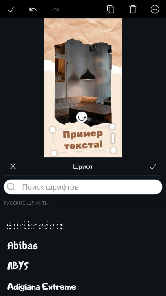 Особое внимание уделено работе с текстом. В Canva есть отдельная подборка шрифтов, поддерживающих кириллицу, что удобно при создании русскоязычных сториз. Можно менять межстрочный интервал, расстояние между буквами и комбинировать несколько стилей текста.