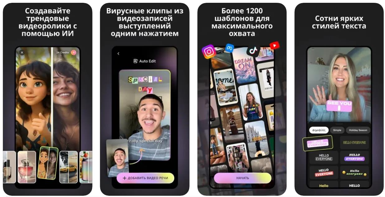 • Видео-редактор «Studio»: позволяет превращать видео в атмосферные ролики с нужным стилем.