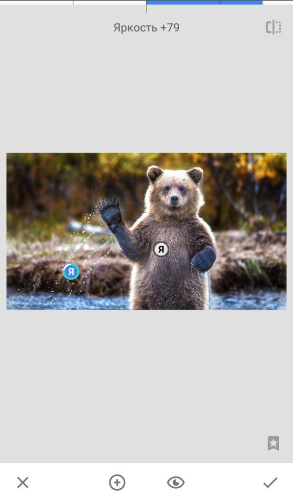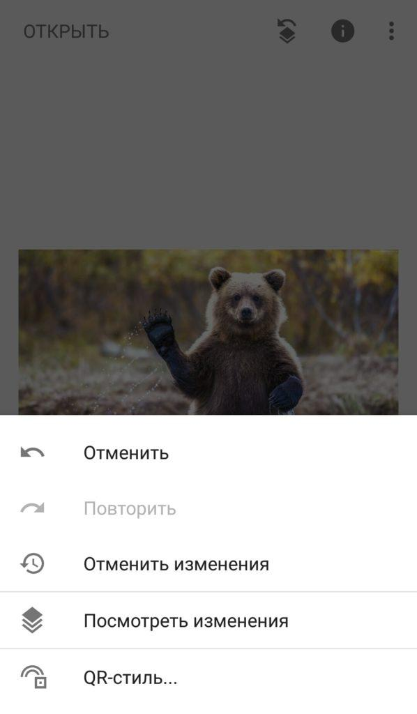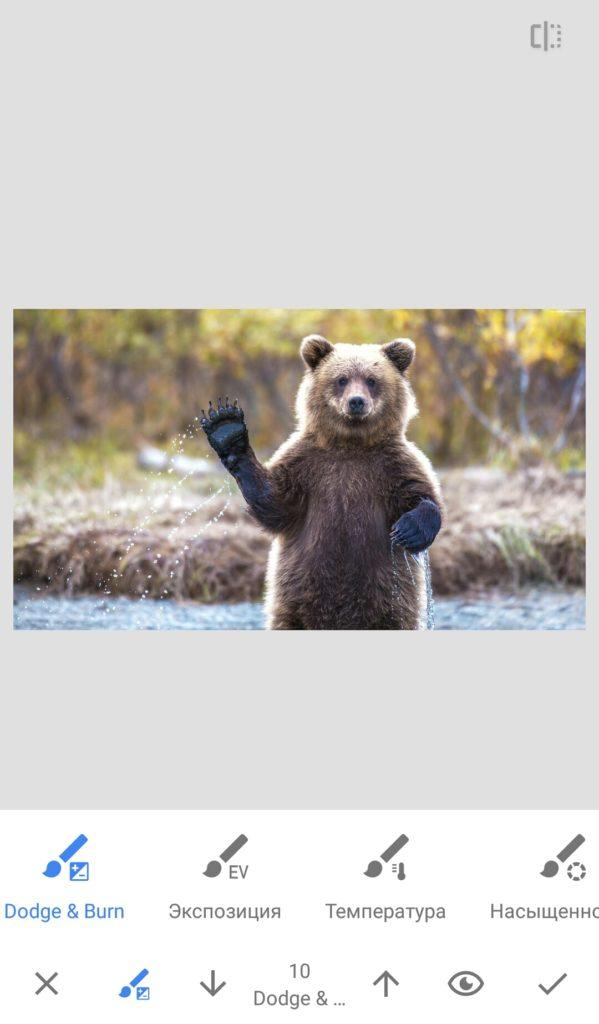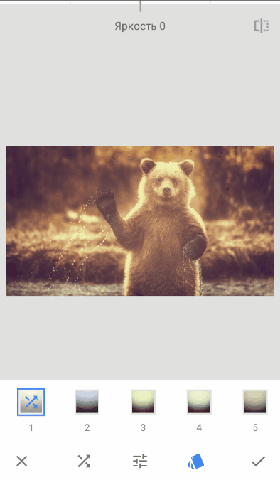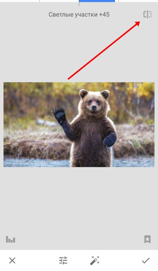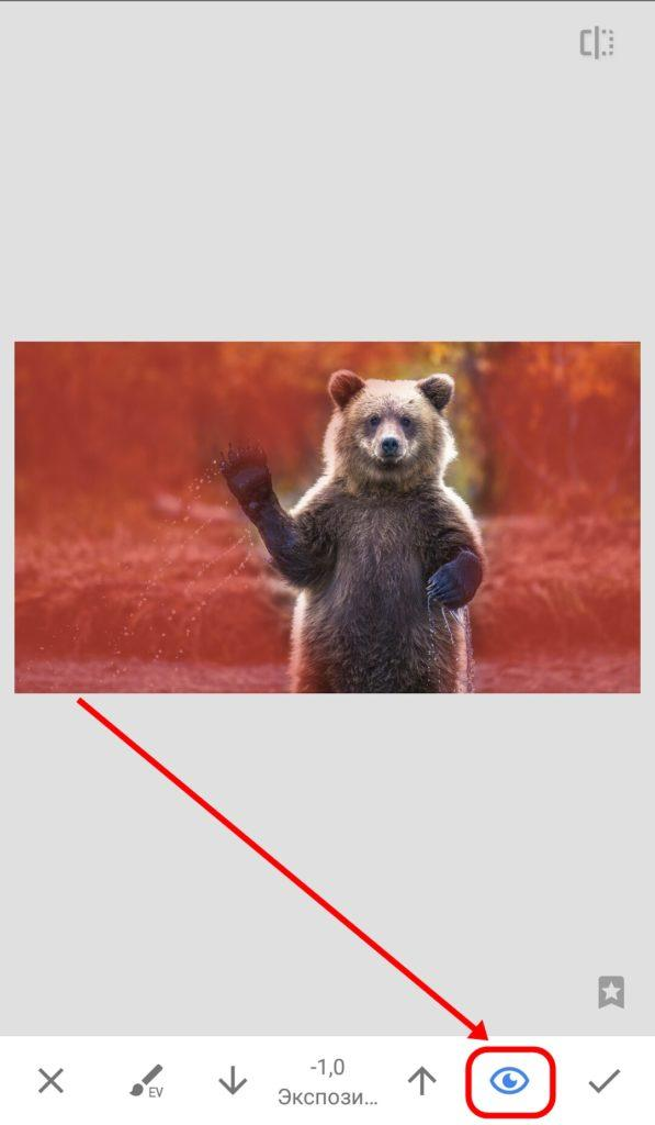 Нажмите на него — Snapseed случайно изменит набор параметров.